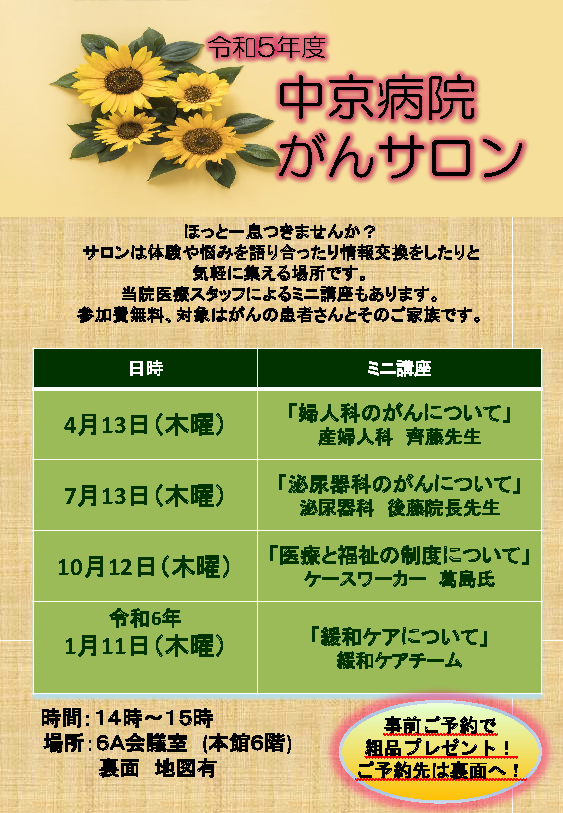 申し込み先:がん相談支援センターひまわり(本館1階 地域医療連携・相談室)